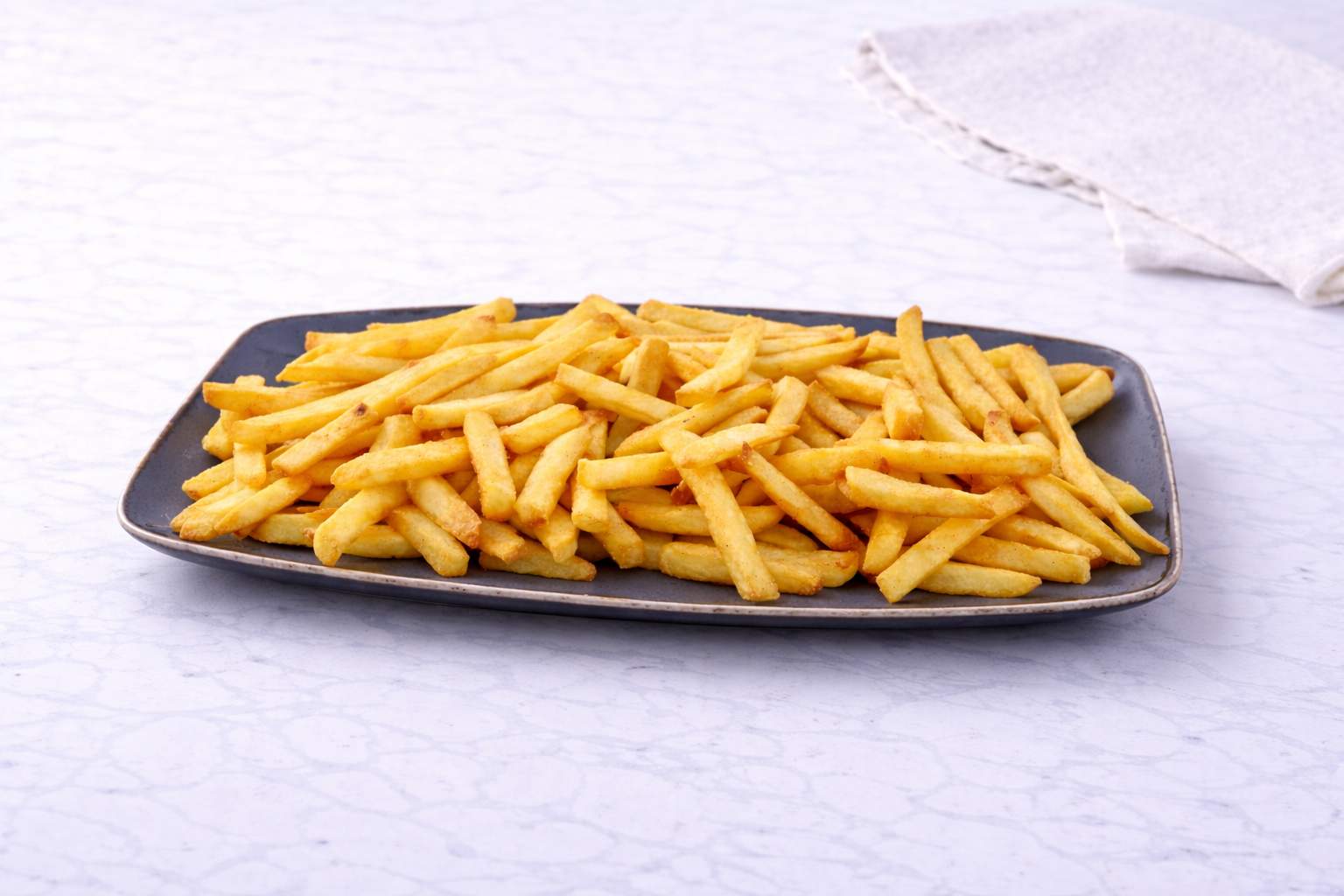 Pommes, 6 st Spicy chicken tenders samt valfri sås